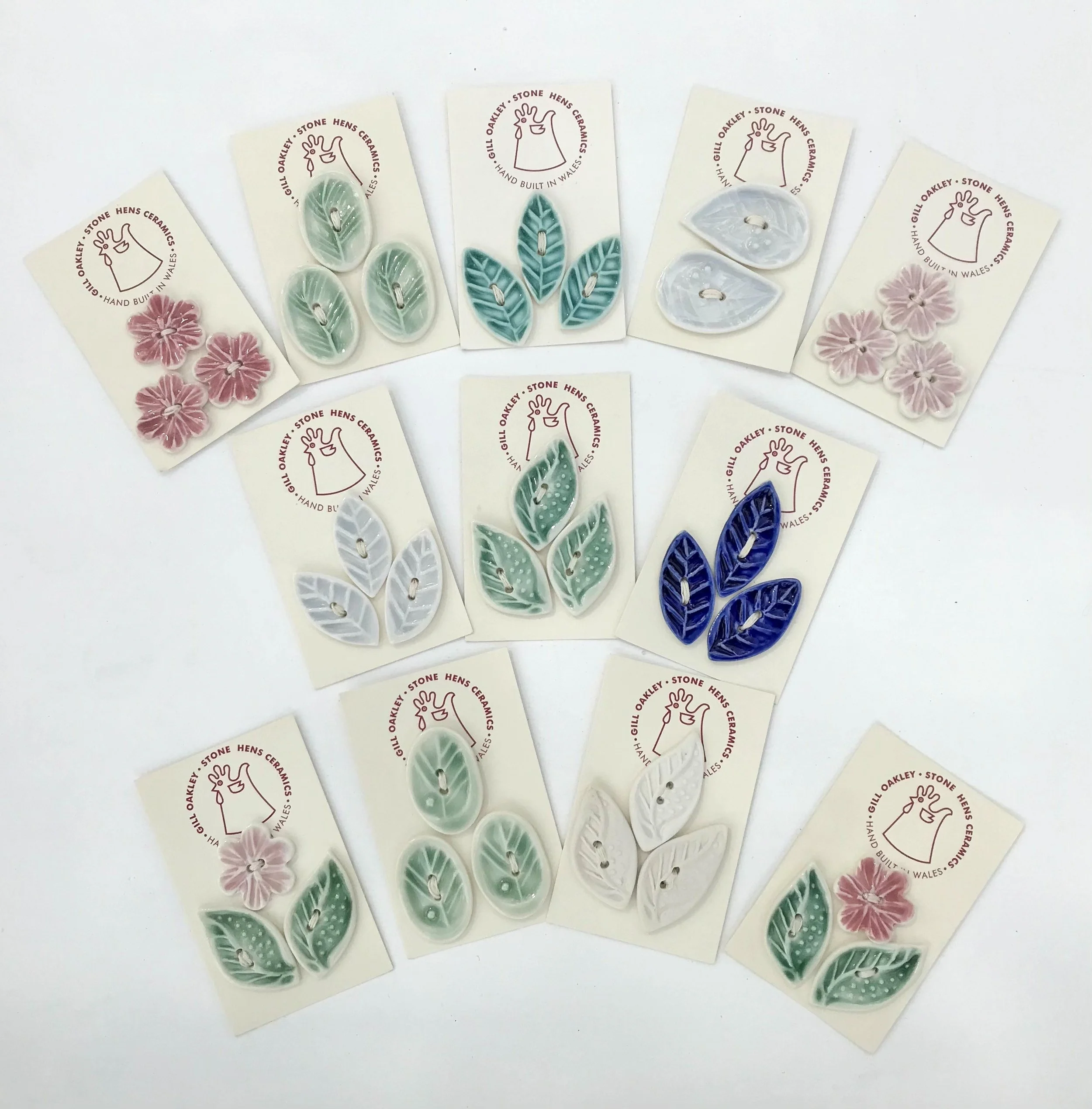 Clay provides a world of possibilities, and Gill has a wide range of products including fine porcelain and stoneware buttons, which have been for sale in Liberty, London, porcelain feather brooches, leaf decorated pin trays, home decor and accessories. Gill is a member of S. W. Potters@stonehensceramics