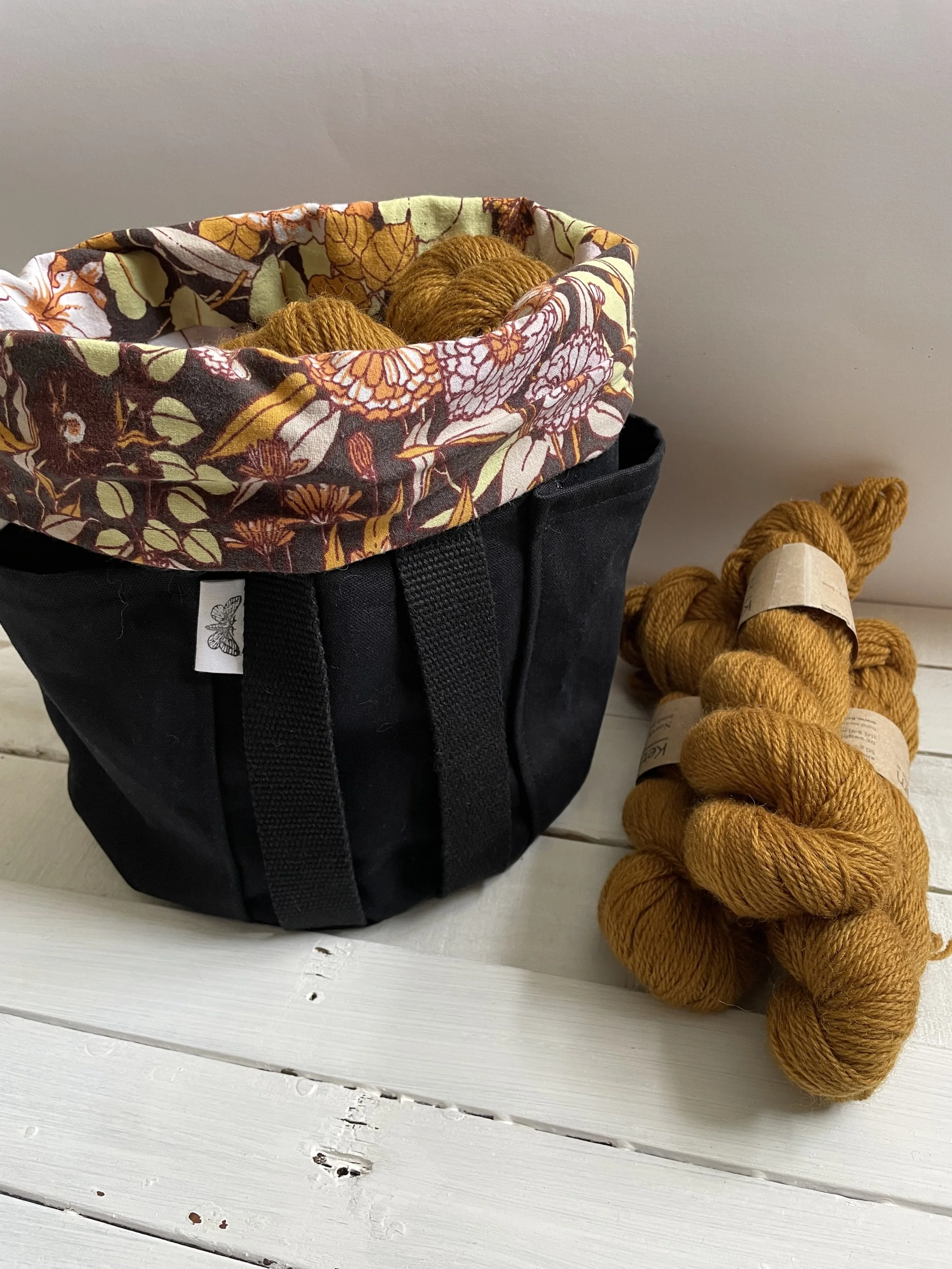 I dye a range of solid, speckled and variegated yarns on a variety of bases and yarn weights.My project bags are hand made locally using high quality fabrics.