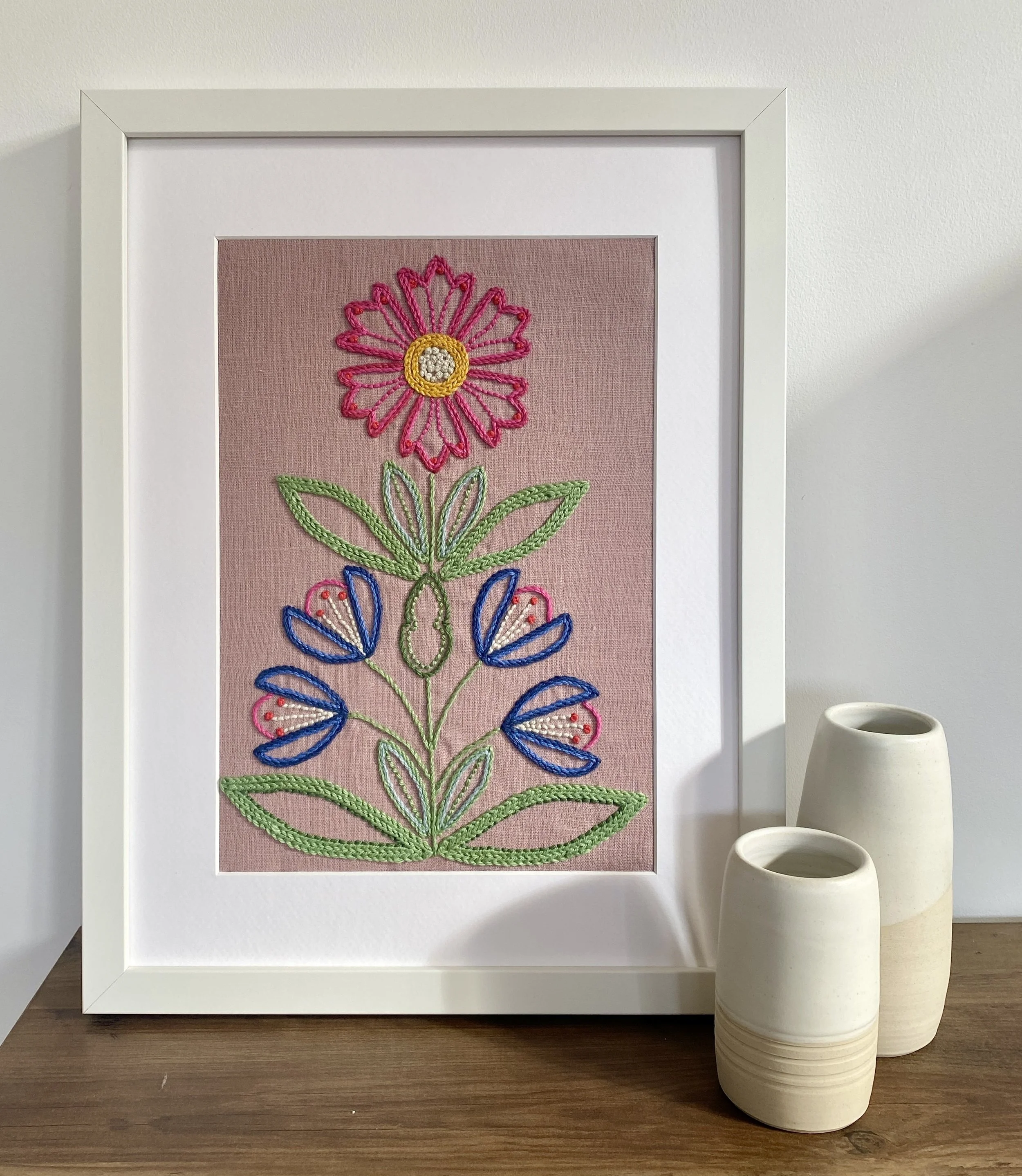The name Ada Brown actually belonged to my Great Grandmother who inspired my love of embroidery. AdaBrown Embroidery Kits are designed by me to be straight forward using a few basic stitches. I want everyone to enjoy and get the benefits of some time out, creating some stress free embroidery. The style of embroidery is on a larger scale than traditional embroidery, and the instructions easy to follow. Each design is created using lovely soft 4ply cotton onto colorful pre printed linen or cotton fabric.